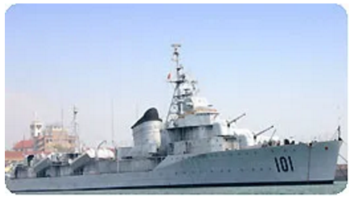鞍山艦,舷號101,原為前蘇聯太平洋艦隊的一艘“雷擊艦”,滿載排水量2581噸。1954年10月,鞍山艦作為我國向蘇聯購買的第一艘驅逐艦駛抵青島,1992年4月24日退出現役,作為重要的歷史文物陳列于海軍博物館。