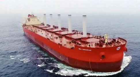 2021年,由上海船院設(shè)計的32.5萬噸超大型礦砂船交付。該船是世界上首艘配備轉(zhuǎn)筒帆的礦砂船,安裝了5臺轉(zhuǎn)筒帆,將使能效提高多達8%,每年由此可減排多達3400噸二氧化碳當量。