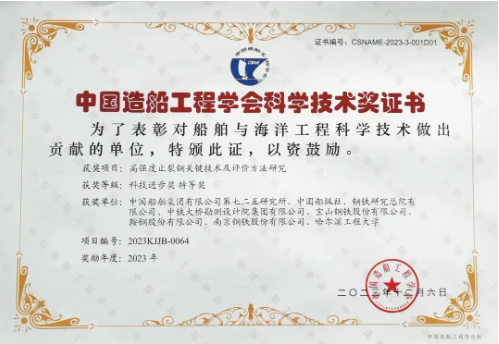 近日,中國(guó)造船工程學(xué)會(huì)發(fā)布了2023年科學(xué)技術(shù)獎(jiǎng)評(píng)審結(jié)果,中國(guó)船舶集團(tuán)七二五所申報(bào)的“高強(qiáng)度止裂鋼關(guān)鍵技術(shù)及評(píng)價(jià)方法研究”榮獲科技進(jìn)步獎(jiǎng)特等獎(jiǎng)。項(xiàng)目團(tuán)隊(duì)歷經(jīng)十余年技術(shù)攻關(guān),在國(guó)際上首次提出了止裂性能大尺寸雙重拉伸試驗(yàn)方法和小尺寸替代試驗(yàn)方法,并成功將其納入國(guó)際船級(jí)社協(xié)會(huì)(IACS)通用規(guī)范,極大提升了我國(guó)在該領(lǐng)域的國(guó)際話語權(quán)和技術(shù)影響力。
