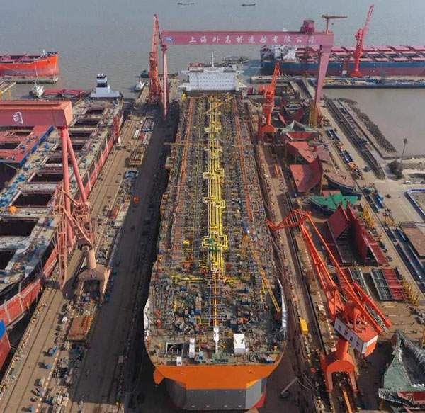 ????3月7日,中國船舶集團(tuán)所屬外高橋造船建造的一艘海上浮式生產(chǎn)儲油船(FPSO)順利出塢。自2月10日復(fù)工復(fù)產(chǎn)以來,在不到一個月的時間里,外高橋造船已先后完成了一艘11.4萬噸阿芙拉型成品油輪、一艘21萬噸紐卡斯?fàn)栃蜕⒇洿鸵凰?8萬噸好望角型散貨船開工建造,兩艘21萬噸紐卡斯?fàn)栃蜕⒇洿鸵凰?8萬噸好望角型散貨船完成試航,一座JU2000E型海上自升式鉆井平臺交付,一艘平臺供應(yīng)船(PSV)完工簽字,兩艘15.6萬噸蘇伊士型原油輪建造合同簽署等生產(chǎn)節(jié)點。
