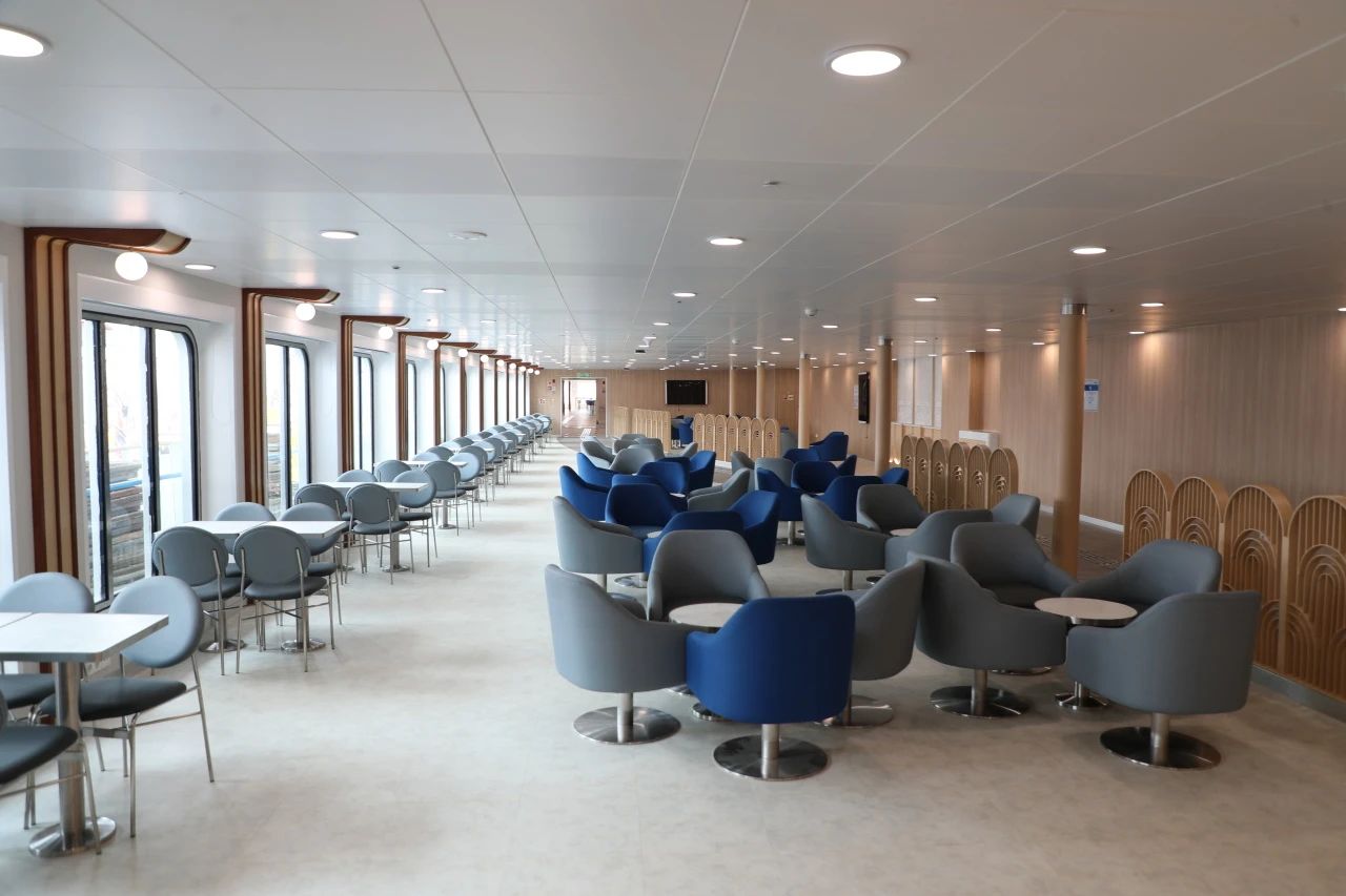 另外,該船還配有完整的隔離病房及防疫區(qū)等,空調(diào)通風也進行了特殊設計,具備完善的生物安全應對措施,是國內(nèi)建造的首艘取得全球最新的biosafe生物安全入級符號的豪華客滾船。